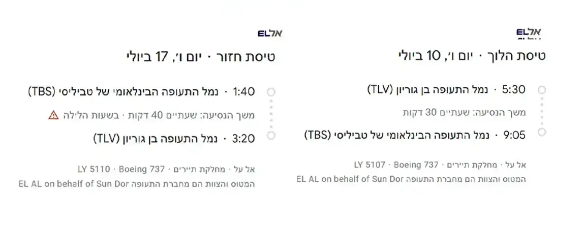 טיסה מספר: LY5107 6:00-9:30AM